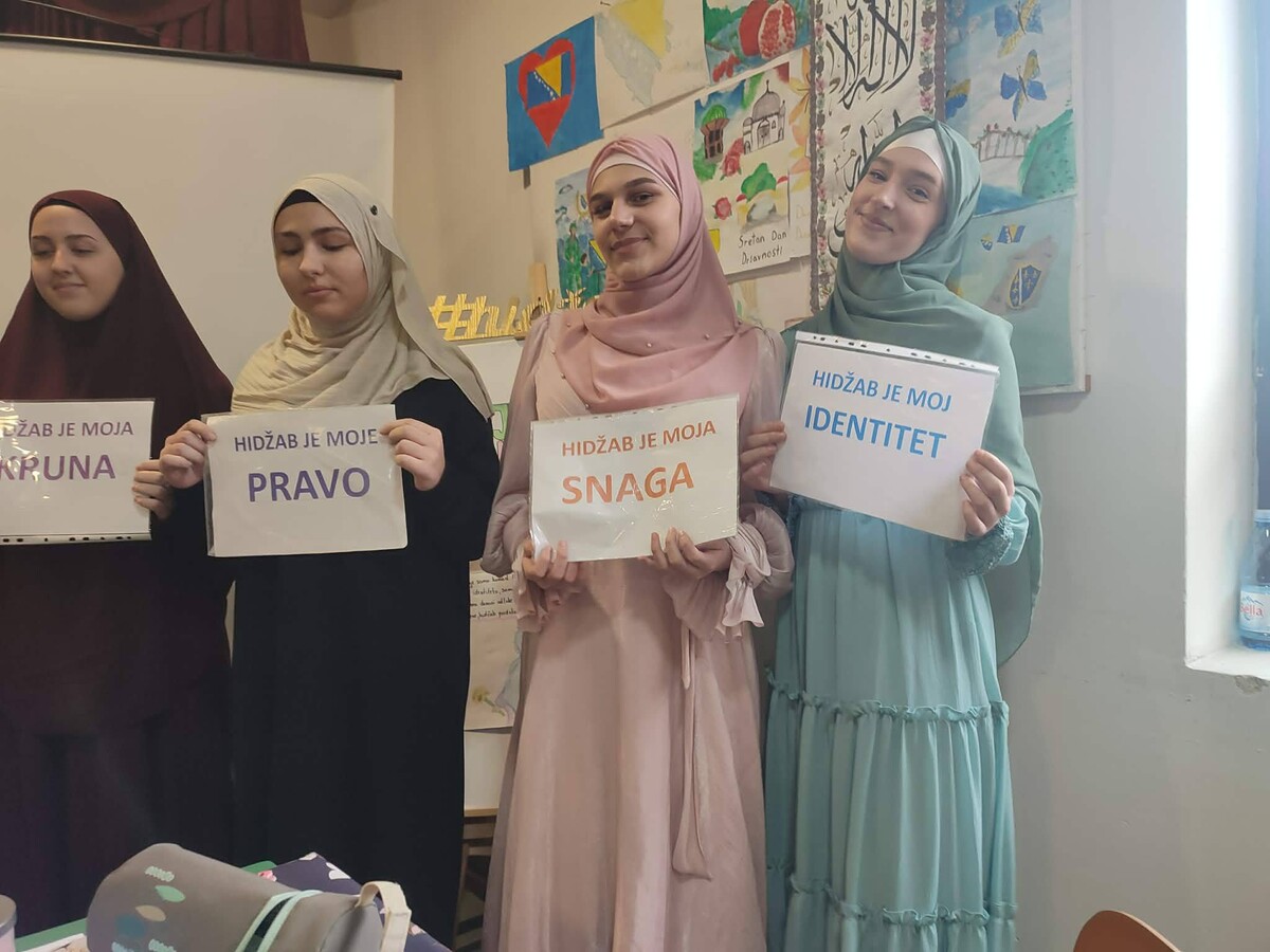 Danas su naše učenice i profesorice obilježile Svjetski dan hidžaba....Prigodnim programom istakle su važnost ličnosti žene muslimanke....njen hidžab je njen izbor, ponos, kruna, smiraj, dostojanstvo..