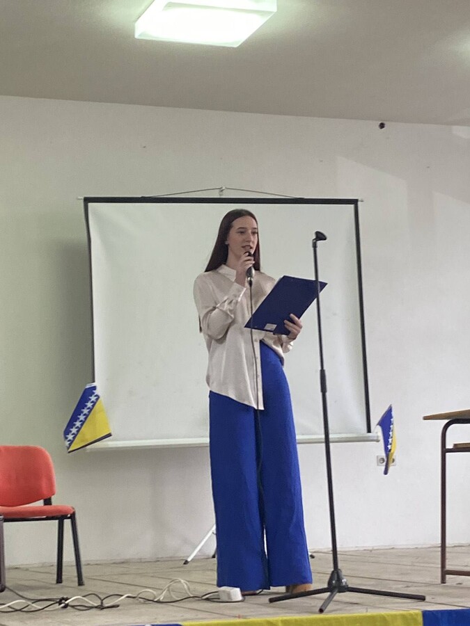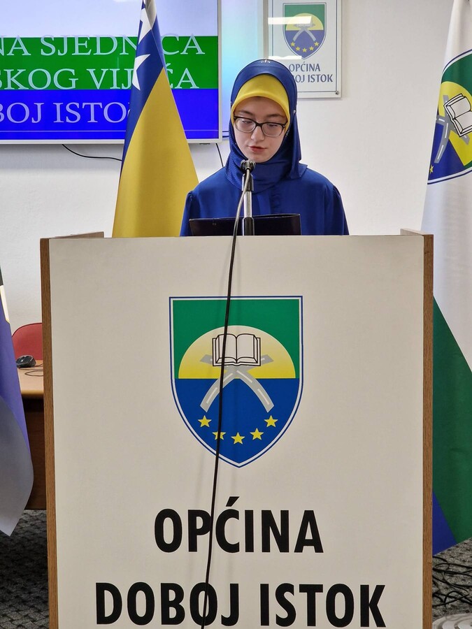 Posebne čestitke upućujemo učenici četvrtog razreda gimnazije Aiši Halilović, koja je ove godine dobila priznanje Općine Doboj istok za najbolji literarni rad povodom Dana državnosti Bosne i Hercegovine.
