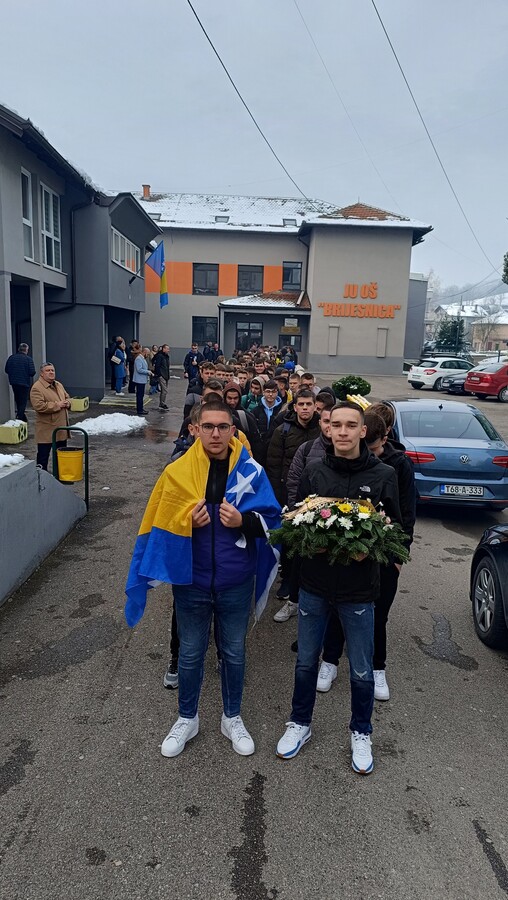 Uz prisustvo učenika i uposlenika škole, cvijeće na spomen obilježje položili su učenici Dženan Habibović i Maid Hodžić.